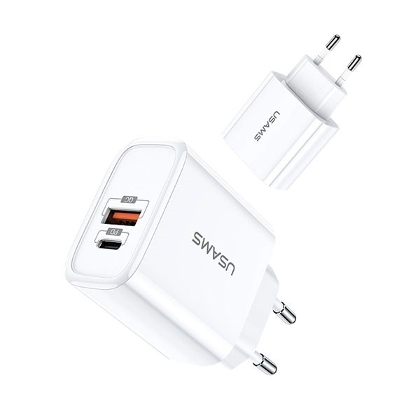 USAMS US-CC070 T15 to inteligentna ładowarka sieciowa z portami USB Quick Charge QC 3.0 i USB-C PD3.0, umożliwiająca szybkie ładowanie dwóch urządzeń jednocześnie. Ładowarka z funkcją szybkiego ładowania Power Delivery o mocy 18W oraz z dodatkowym portem USB, idealna do telefonów, tabletów i laptopów z portem USB-C. Dodatkowy port USB z szybkim ładowaniem zapewnia pełną uniwersalność. Dzięki wbudowanemu inteligentnemu układowi zarządzania, nie tylko dopasuje odpowiednie napięcie do konkretnego sprzętu, ale także do poziomu jego naładowania (ograniczając w ten sposób pobór prądu).
