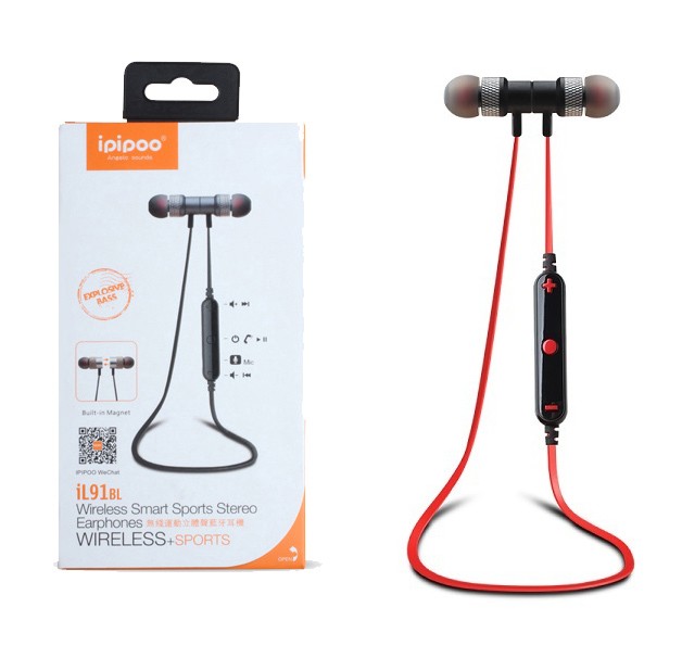 iL91BL Czarno-czerwone by AWEI douszne słuchawki bezprzewodowe Bluetooth 4.2