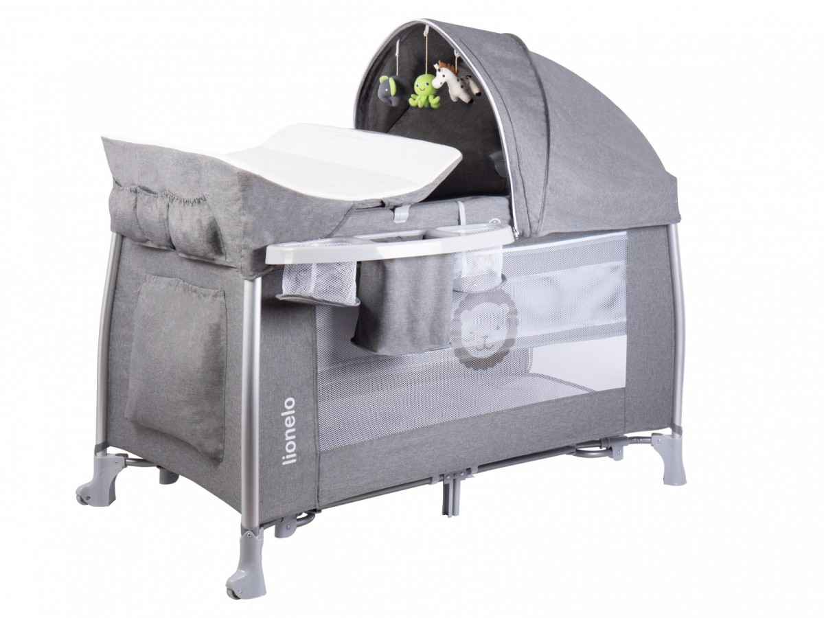 Łóżeczko turystyczne z wytrzymałego, odpornego na przetarcia materiału. Simon jest w pełni uniwersalny może służyć również jako kojec i przewijak, a dzięki wygodnemu mechanizmowi składania do małych rozmiarów oraz wyposażeniu w koła idealnie nadaje się do podróży. Rozkładany daszek chroni dziecko przed promieniami UV. Użyteczne dodatki: organizer, karuzela z zabawkami z funkcją muzyki i światełkami, moskitiera.