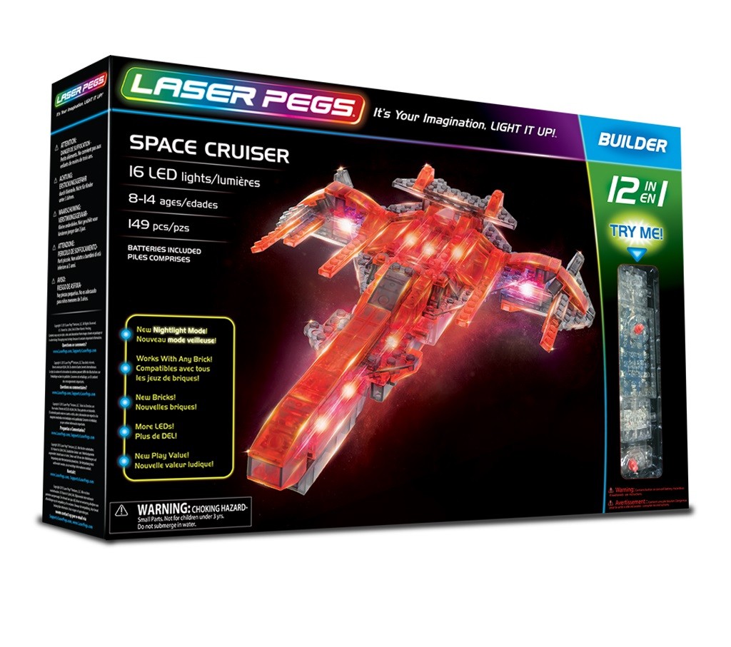 SPACE CRUISER 12w1 to zestaw podświetlanych klocków, z których zbudować można kosmiczny prom i w sumie aż 12 różnych modeli. 149 klocków i 16 elementów z diodami LED pozwalają na stworzenie własnych konstrukcji, inspirowanych gwiezdnymi bataliami. Przemierzaj strefy międzygalaktyczne za sterami krążownika kosmicznego, kosmodromu, czy wahadłowca. Pokonaj granice własnej wyobraźni i obierz kurs na świetną zabawę.