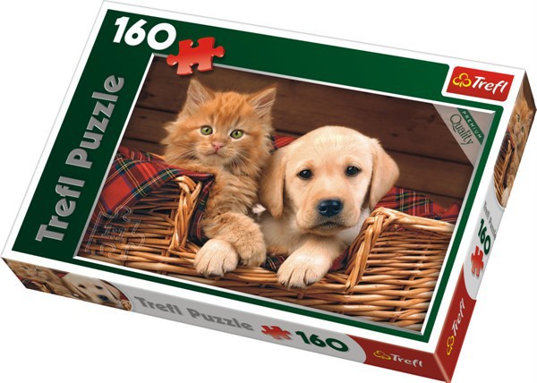 Puzzle 160 elementów ze zdjęciem małego pieska i kotka. Po ułożeniu powstanie obrazek o wymiarach 41x27,8cm. Wysoką jakość, nasycenie kolorów i bezpieczeństwo układania zapewnia wykorzystanie materiałów ekologicznych.