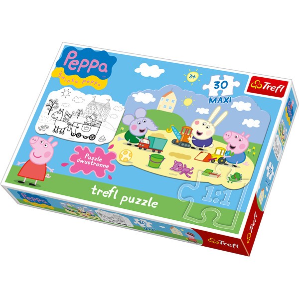 Puzzle Maxi konturowe to duże, dwustronne układanki przeznaczone dla młodszych dzieci. Dają możliwość ułożenia zarówno pięknego obrazka z ulubionymi bohaterami, jak i kolorowanki pomagającej rozwijać kreatywność już od najmłodszych lat. Puzzle zapewniają ciekawą i urozmaiconą zabawę połączoną z radością samodzielnego tworzenia. Gratka dla wszystkich miłośników bajki "Świnka Peppa".