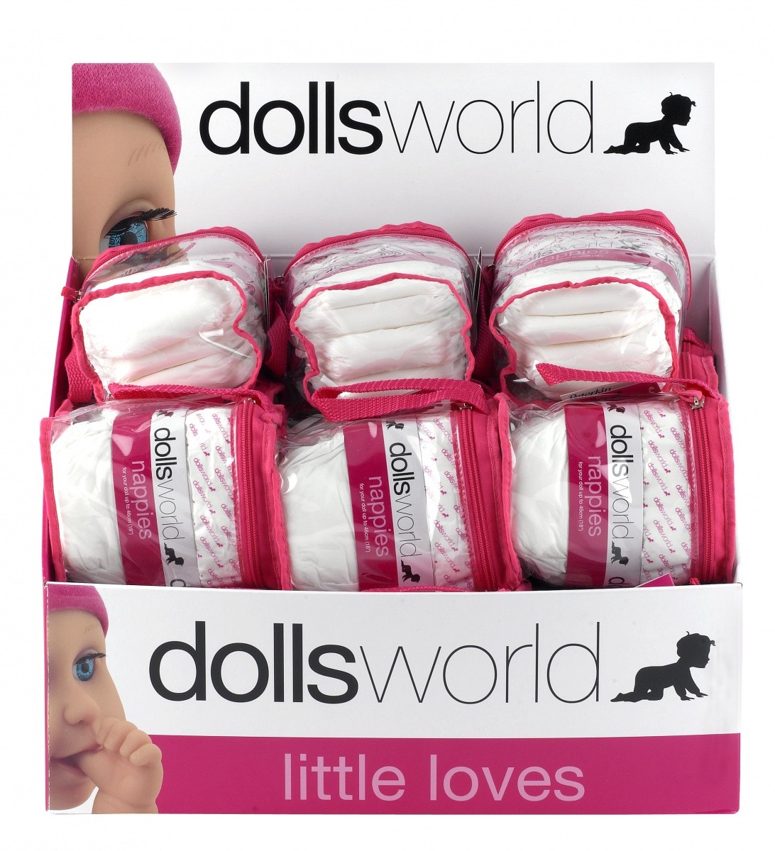 Dolls World pieluszki dla lalek do 46 cm - 4 sztuki to idealne uzupełnienie zabawy lalką Dolls World.
