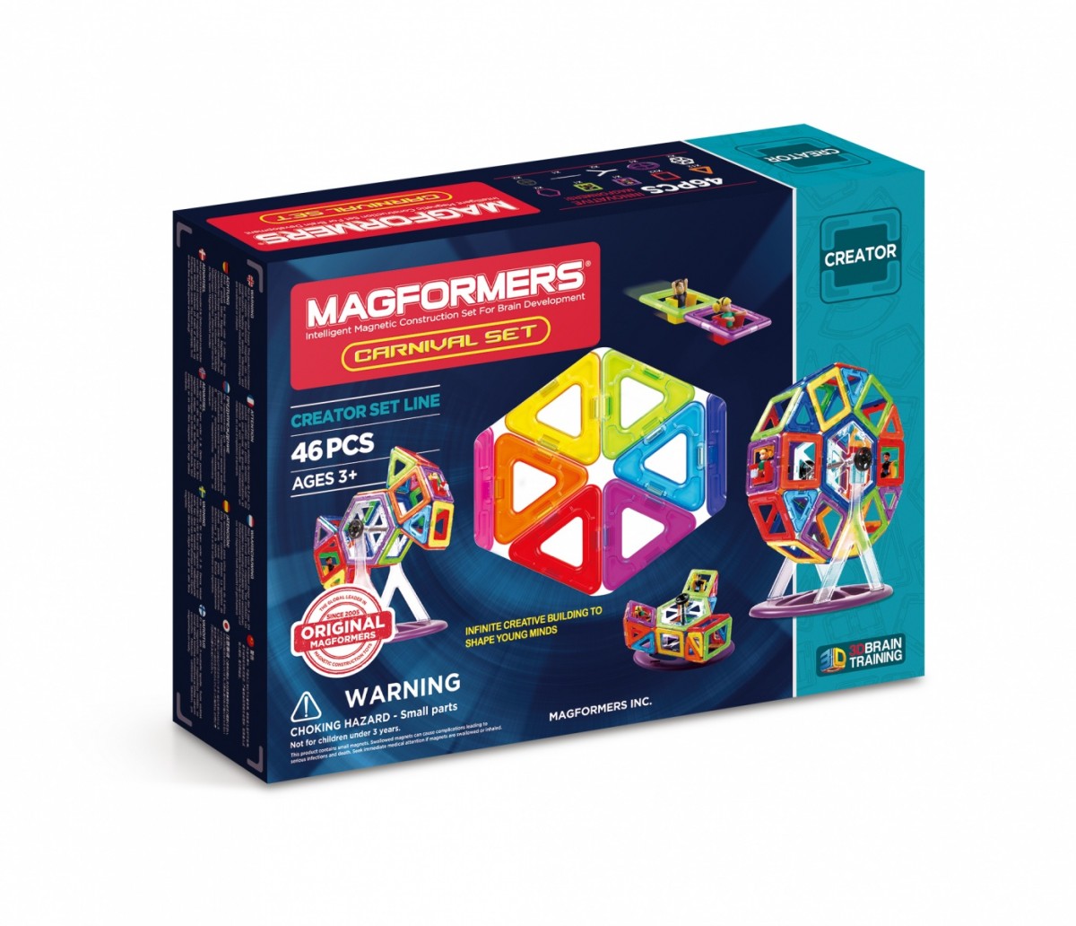 Magformers to klocki z wbudowanymi silnymi magnesami neodymowymi. Za pomocą figur geometrycznych można zbudować wspaniałe trójwymiarowe budowle, począwszy od prostych figur, skończywszy na pomysłowych budowlach. Magformers to kreatywne klocki, które dają nieograniczone możliwości zabawy. Klocki kształtują i rozwijają wyobraźnię przestrzenną dziecka oraz logiczne myślenie.