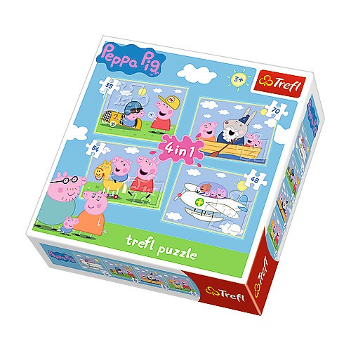 Po ułożeniu otrzymamy cztery obrazki różnej wielkości przedstawiającymi podróże Świnki Peppy. Zestaw doskonale spełnia oczekiwania rodzeństwa - każdy ułoży swój ulubiony obrazek nawet w tym samym czasie. Zróżnicowana liczba elementów pozwala na zabawę zarówno młodszym, jak i nieco starszym dzieciom. Dodatkowym urozmaiceniem zabawy może być układanie na czas, porównywanie obrazków, szukanie różnic i podobieństw. Zabawna grafika ze świnką Peppą i możliwość wspólnego tworzenia to powody, dla których dzieci uwielbiają układać puzzle.