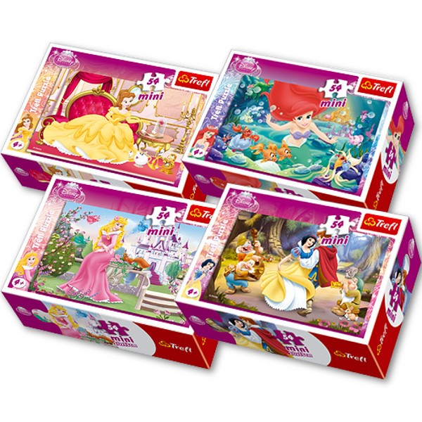 Zestaw 4 układanek dla dziewczynek w małych, wygodnych pudełeczkach, które swobodnie zmieszczą się w dziecięcym plecaczku i na półce z zabawkami. Każda układanka to inny obrazek, złożony z 54 elementów. Zestaw jest doskonałym pomysłem na upominek dla rodzeństwa każdy otrzyma swoją własną, kolorową układankę. Urozmaiceniem zabawy będzie układanie puzzli na czas, porównanie obrazków, szukanie podobieństw i różnic. Po ułożeniu dzieci otrzymają piękne obrazki z uwielbianymi Księżniczkami. To właśnie piękna grafika serii Disney Princess i możliwość tworzenia sprawiają, że układanie puzzli sprawia dzieciom tyle radości.