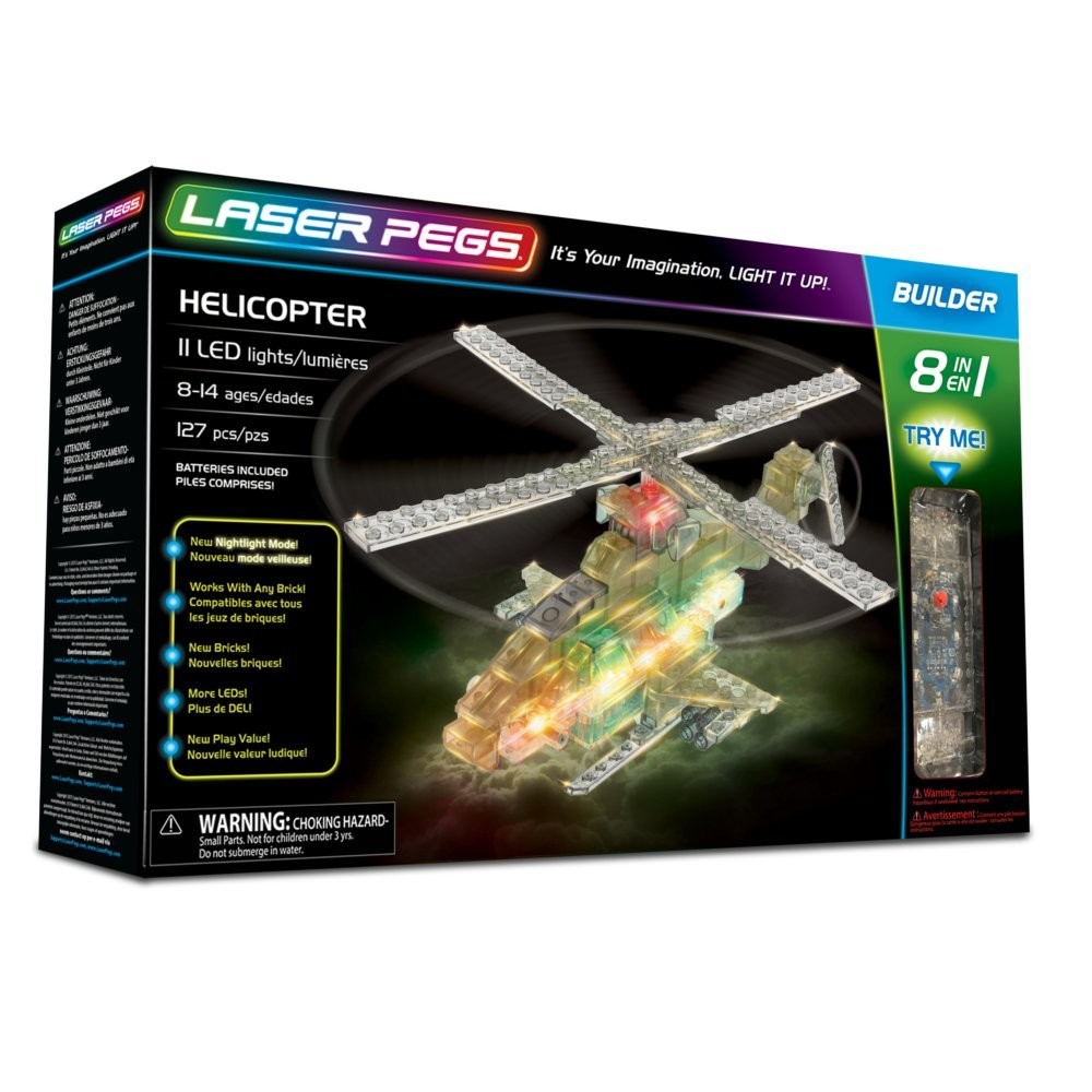 HELICOPTER 8w1 to możliwość różnorodnej i ciekawej zabawy dla pasjonatów lotnictwa, czy militariów. Zestaw zawiera 127 kolorowych klocków o półtransparentnej bryle, a także 11 podświetlanych elementów z diodami LED. Model pozwala na zbudowanie aż ośmiu różnych konstrukcji świecących śmigłowców wielozadaniowych. To Ty decydujesz czy sterujesz dziś bezzałogową maszyną, czy niewidocznym dla radarów śmigłowcem pasażerskim.