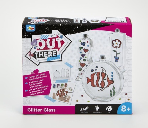 Stwórz wyjątkowe brokatowe butelki. Zestaw składa się z 3 różnych butelek, farb konturowych, farb brokatowych oraz samoprzylepnych kryształków. Stwórz własne niepowtarzalne projekty, a następnie wyeksponuj je w salonie, tak by każdy mógł je zobaczyć.