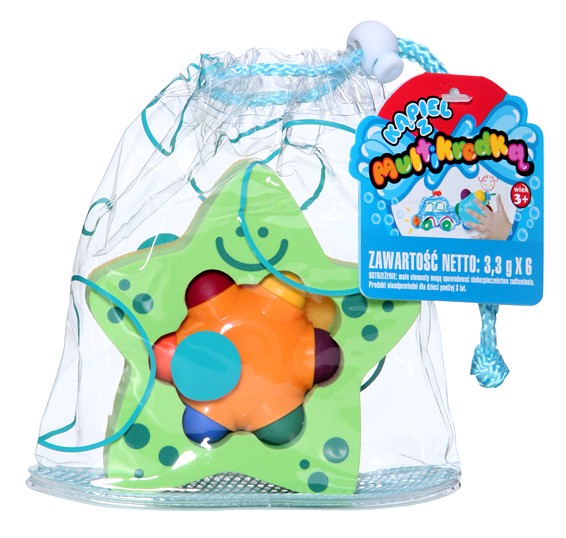 Ten zestaw zawiera plastikową rozgwiazdę, w której znajduje się 6 kolorowych kredek do kąpieli! Wyraziste kolory,