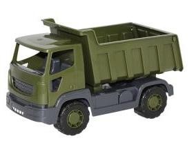 "Zabawki związane z wojskiem nie zawsze muszą kojarzyć się z odgrywaniem scen batalistycznych. Żołnierze zawsze fascynowali, budzili respekt, szacunek i zaufanie. Dzieci chętnie widziały w nich swoich bohaterów. Ulubione postacie muszą mieć zapewniony odpowiedni transport. Dla maluchów interesujących się militariami firma POLESIE ma w swojej ofercie serię samochodów wojskowych. AGAT, WYWROTKA WOJSKOWA to pojazd wykonany z wysokiej jakości tworzywa. Dzięki temu produkt jest trwały, a zabawa nim bezpieczna. Wywrotka posiada cztery szerokie koła o nierównej strukturze, co umożliwia jej jazdę nie tylko po gładkich i jednolitych powierzchniach. Naczepę samochodu można podnosić i obniżać, co imituje pracę prawdziwej maszyny. Oprócz tego posiada ona kalpę z tyłu, którą można unieść. Z przodu auta znajduje się miejsce na przywiązanie sznurka, dzięki czemu pojazd można ciągnąć. W kabinie kierowcy z kolei mnóstwo miejsca dla figurki ulubionego żołnierza."