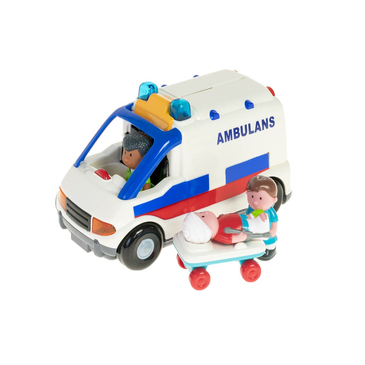 Ambulans Na Ratunek jest bezpieczną zabawką już dla rocznego dziecka. Może się nią bawić także starsze dziecko (zabawka rekomendowana do 5-go roku życia). Ambulans mówi po polsku frazy związane tematycznie z karetką pogotowia np. Zaraz będziemy w szpitalu, Czy ktoś jest ranny. Ma realistyczne wyposażenie. Otwórz ścianki, aby bawić się wewnątrz ambulansu. Połóż pacjenta na nosze i umieść w karetce. Naciśnij i uruchom aparat EKG lub defibrylator. Ambulans ma świecące światła i wydaje realistyczne dźwięki.