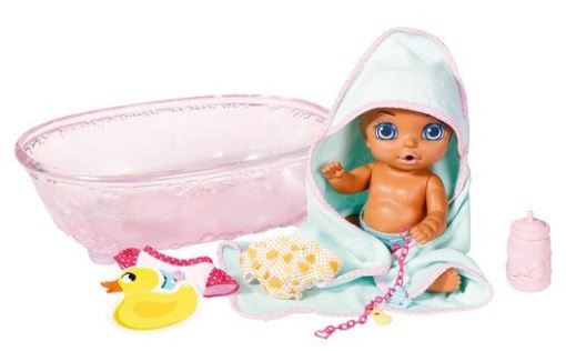 Duży dzidziuś w wanience, lalka ma tajemnicze oczka i włosy zmieniające kolor. W komplecie wspaniałe akcesoria.Turkusowa mata do przewijania służy również jako ręcznik. Nalej kilka kropli wody i wytrzyj zamknięte oczy dziecka, aby odkryć kolor oczu noworodka. Kolor włosów dziecka często zmienia się po pewnym czasie. To małe dziecko nie jest wyjątkiem. Jego włosy zmieniają kolor, gdy wchodzą w kontakt z wodą. Oprócz kąpieli dziecko lubi też pić z butelki. To świetna zabawa.