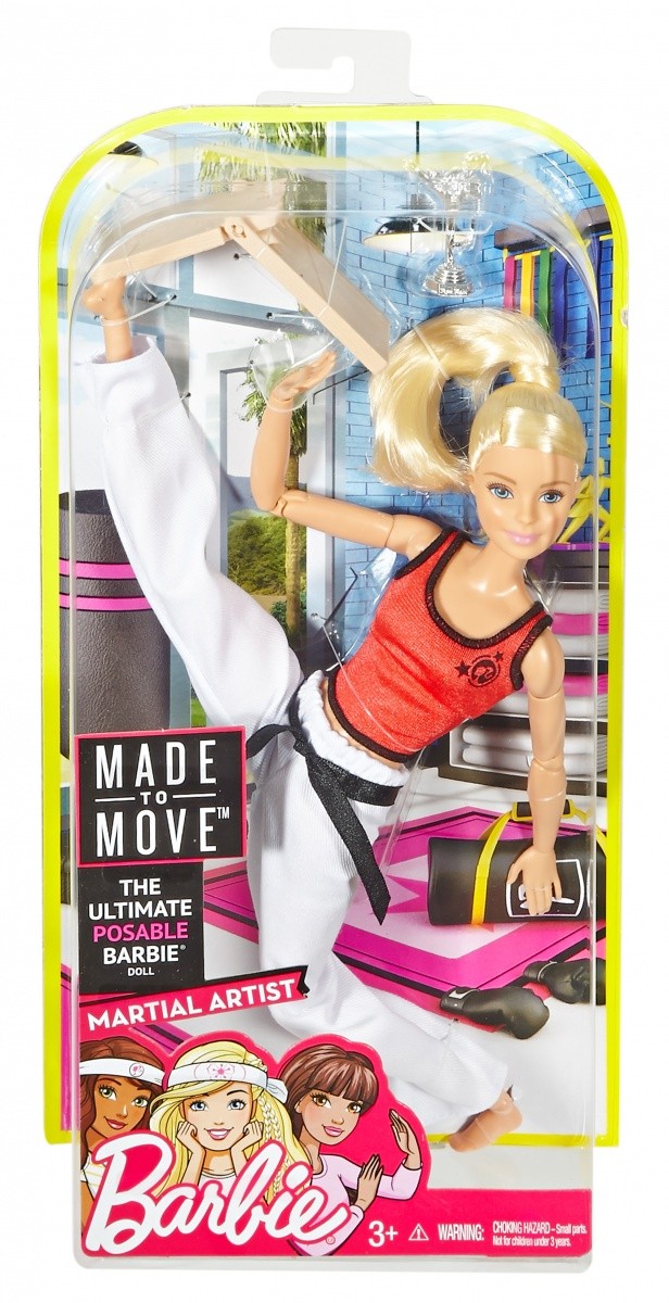 Dziewczynki mogą odkrywać ekscytujące zawody świata superatletek ze Sportowymi lalkami Barbie®, aby przekonać się, że również mogą być, kim chcą! Barbie® Sportowe lalki ubrane są w tematyczne stroje, typowe dla danej dyscypliny, i towarzyszą im dodatkowe akcesoria, które pomogą im w zawodach. Wyjątkowa elastyczność pomaga im wykonywać nawet najbardziej ekstremalne akrobacje i wygrać w każdych zawodach! Wybieraj między lalką mistrzynią sztuk walki, skaterką i piłkarką. Każda lalka Barbie® ma własny unikalny styl, a także typ sylwetki, kolor skóry, oczu i włosów, aby maksymalnie zwiększyć możliwości zabawy i inspirować do działania. Niesamowita liczba 22 punktów zgięcia gwarantuje pełną swobodę ruchu. Dodatkowe zgięcia znajdują się na szyi, ramionach, łokciach, nadgarstkach, torsie, biodrach, udach, kolanach oraz kostkach! W zestawie lalka w ubrankach i z akcesoriami.