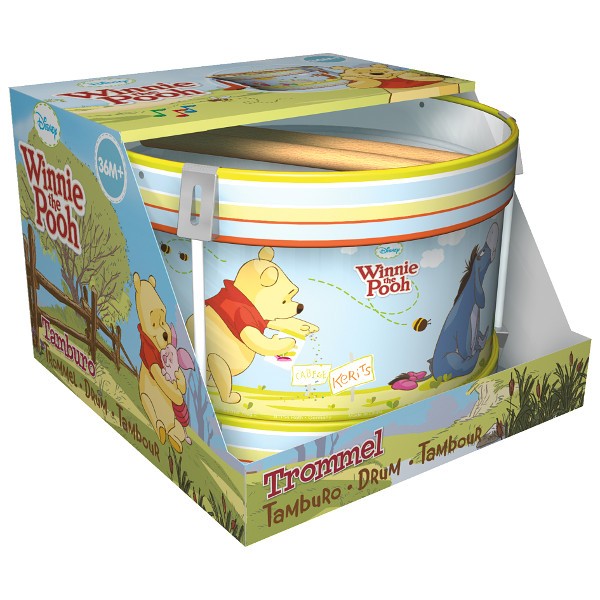 Bębenek z Kubusiem Puchatkiem o średnicy 17 cm.