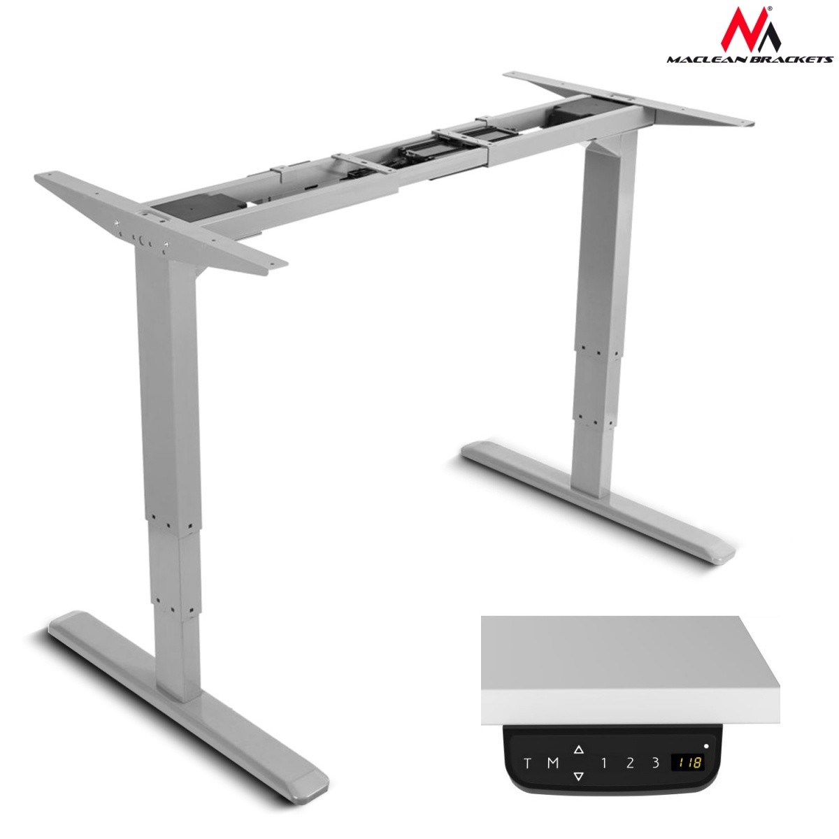 Biurko - elektryczna regulacja wys, szary Maclean MC-763 max wys 125cm 100 kg - bez blatu do pracy stojąco siedzącej.