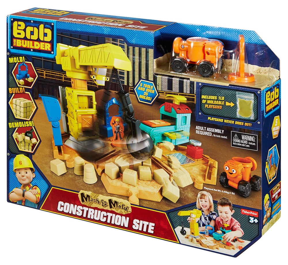 Mali pomocnicy Boba mogą użyć 5 dołączonych narzędzi i wielu foremek, aby kształtować, lepić i formować prawie pół kilograma zawartego w zestawie czystego, kinetycznego piasku nadającego się do zabawy w domu. Buduj na podstawie z dowolnie łączonych 4 sześciokątów, które pomieszczą Betoniarkę, Żurawia z kulą do burzenia, pieczątkę Boba/Marty czy stacjonarną prasę do wytwarzania cegłówek z piasku! Zestaw zawiera też inspirowane uwielbianym serialem elementy tematyczne. W zestawie 4 podstawy, Betoniarka, Żuraw, 5 narzędzi do piasku, foremki, pieczątka, ponad 450gm piasku kinetycznego i wiele elementów tematycznych.