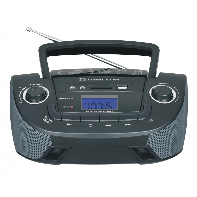 Manta MM208BT DROP II ma wbudowany czterozakresowy odbiornik radiowy umożliwiający słuchanie ulubionych audycji radiowych nie tylko na falach ultrakrótkich (UKF-FM), ale także na długich i oraz dwóch pasmach fal średnich. Czyni to MM208BT DROP II jednym z najbardziej uniwersalnych odbiorników radiowych na rynku. Teleskopowa antena zapewnia doskonały odbiór nawet w dużej odległości od nadajników.