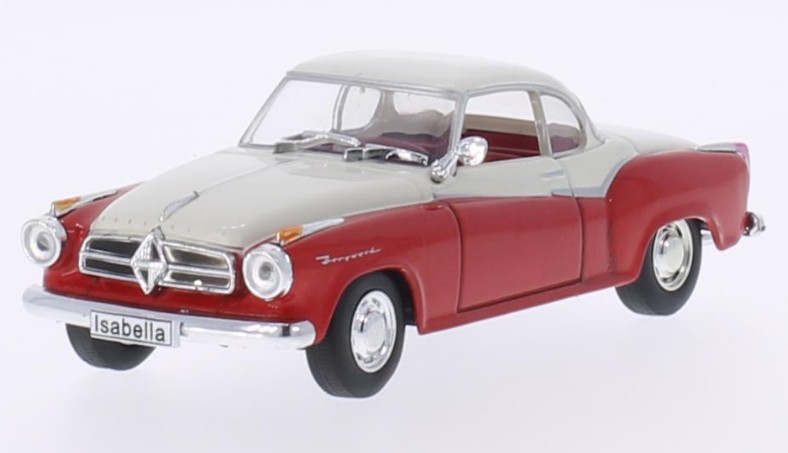 Strona główna Kolekcjonerskie modele metalowe Borgward Isabella Coupe 1957 Cena Netto: 57,24 zł. error_outline Produkt chwilowo niedostępny. Opis Borgward Isabella Coupe 1957 (red/matt white) pochodzi z kolekcji firmy WhiteBox. Model metalowy z elementami plastikowymi.