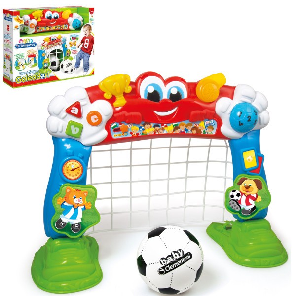Wielofunkcyjna zabawka 2 w 1: mozna trenować strzały na bramkę i odkrywać bogatą zawartość centrum edukacyjnego.