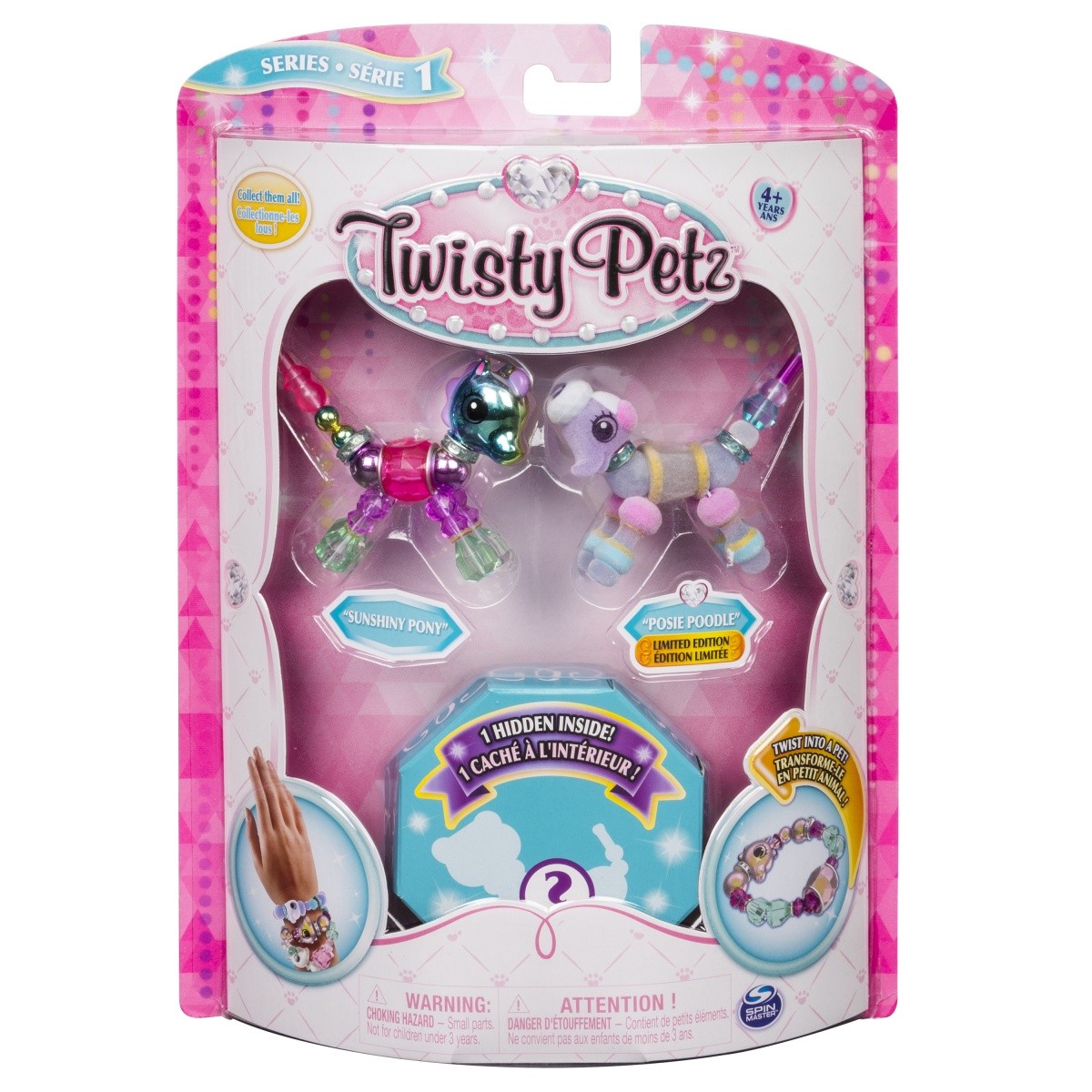 Bransoletka z której skręcisz zwierzaka! Twisty Petz to olśniewające bransoletki, które zmieniają się w urocze zwierzaki! Kucyki i kotki, magiczne jednorożce i wiele innych do zebrania! W odcieniach pastelowych, tęczowe, perłowe, transparentne i srebrne zwierzaki Twisty Petz z których skręcisz modne bransoletki i błyszczące naszyjniki! Aby skręcić zwierzaka z łątwością przekręć przednie i tylne łapy. Aby zmienić go z powrotem w bransoletkę, rozkręć i połącz oba końce. Aby nosić naszyjnik po prostu połącz trzy zwierzaki razem! Ten pełen klejnotów zestaw zawiera trzy urocze zwierzaki Twisty Petz - oraz niespodziankę! Ponad 70 zwierzaków do zebrania - odkryj ich urok!