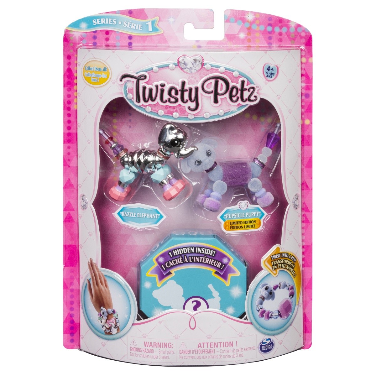 Bransoletka z której skręcisz zwierzaka! Twisty Petz to olśniewające bransoletki, które zmieniają się w urocze zwierzaki! Kucyki i kotki, magiczne jednorożce i wiele innych do zebrania! W odcieniach pastelowych, tęczowe, perłowe, transparentne i srebrne zwierzaki Twisty Petz z których skręcisz modne bransoletki i błyszczące naszyjniki! Aby skręcić zwierzaka z łątwością przekręć przednie i tylne łapy. Aby zmienić go z powrotem w bransoletkę, rozkręć i połącz oba końce. Aby nosić naszyjnik po prostu połącz trzy zwierzaki razem! Ten pełen klejnotów zestaw zawiera trzy urocze zwierzaki Twisty Petz - oraz niespodziankę! Ponad 70 zwierzaków do zebrania - odkryj ich urok!