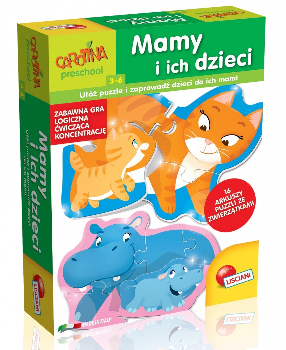 Strona główna Gry/Puzzle gry Carotina Mamy i ich dzieci Cena Netto: 15,74 zł. error_outline Produkt chwilowo niedostępny. Opis Gra polegająca na ułożeniu 16 arkuszy puzzli, przyporządkowując każde młode zwierzątko do jego mamy! Opakowanie zawiera 16 elementów z dorosłymi zwierzętami oraz 16 elementów z młodymi zwierzętami.