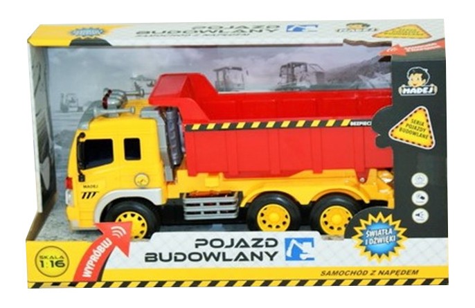 Strona główna Pojazdy pojazdy Ciężarówka z dźwiękiem Cena Netto: 26,42 zł. error_outline Produkt chwilowo niedostępny. Opis Pojazd budowlany - WywrotkaZabawka na baterie.Posiada efekty świetlne i dźwiękowe.Skala 1:16