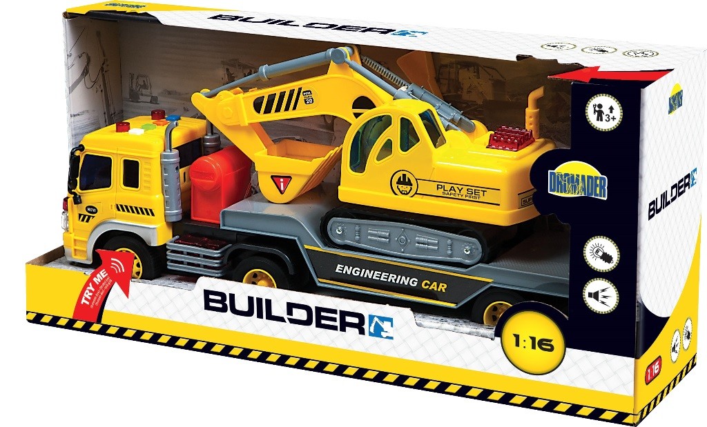 Strona główna Pojazdy pojazdy Ciężarówka z koparką Cena Netto: 37,34 zł. error_outline Produkt chwilowo niedostępny. Opis Ciężarówka z koparką Zabawka wykonana w skali 1:16. Posiada efekty świetlne i dźwiękowe.