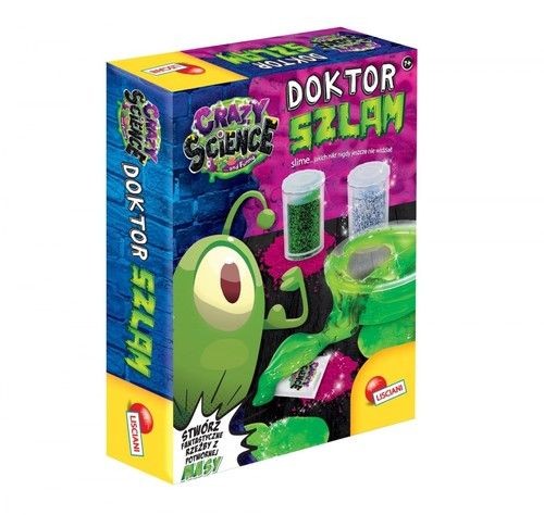 Mały zestaw glutów Doktora Szlama, który zawsze można zabrać ze sobą. Pojedyncze opakowanie pozwala na przygotowanie rozmaitych slime w jednym kolorze. Crazy Science to nowa seria gier Lisciani w której dzieci zagłębiają się w naukowy świat z przymrużeniem oka. Przez całą serię towarzyszy im Cillo - zabawna bakteria, która przedstawia kolejnych naukowców i krok po kroku opisuje w jaki sposób bezpiecznie wykonać doświadczenia.