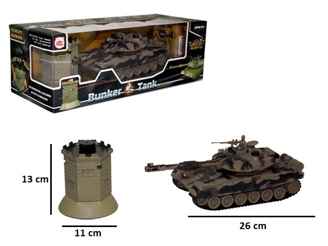 Buniker obraca się wokół własnej osi, efekty świeytle i dźiękowe, kiedy zostanie ostrzelany eksploduje (rozpada się na części).