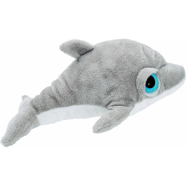 Wszyscy wiedzą, że delfiny to jedne z najinteligentniejszych zwierząt na Ziemi, ale pewnie mało kto wie, że delfiny śpią, unosząc się pod powierzchnią wody, z jedym okiem otwartym. Nasz pluszowy delfin wypełniony groszkiem, obydwa ma otwarte, a swoim spojrzeniem rozczuli nawet rekina