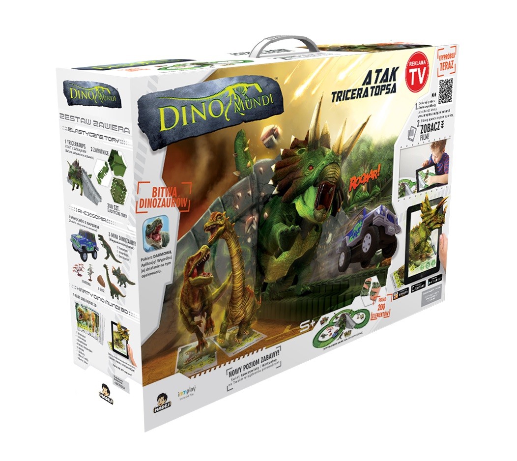 Każdy zestaw zawiera dodatkowe akcesoria oraz przede wszystkim karty Dino Mundi 3D, które dzięki darmowej aplikacji umożliwiają dziecku interaktywnie uczestniczyć w wirtualnym świecie dinozaurów!