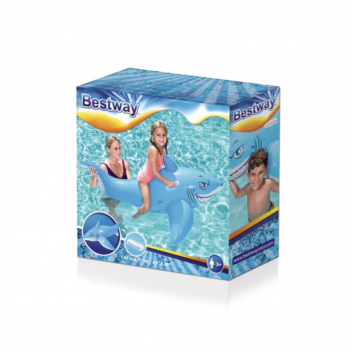 - Pływak Great White Shark to nadmuchiwana zabawka basenowa dla dzieci o długości ponad 1,57 m, dzięki czemu jest idealna dla jednego wodnego jeźdźcy.