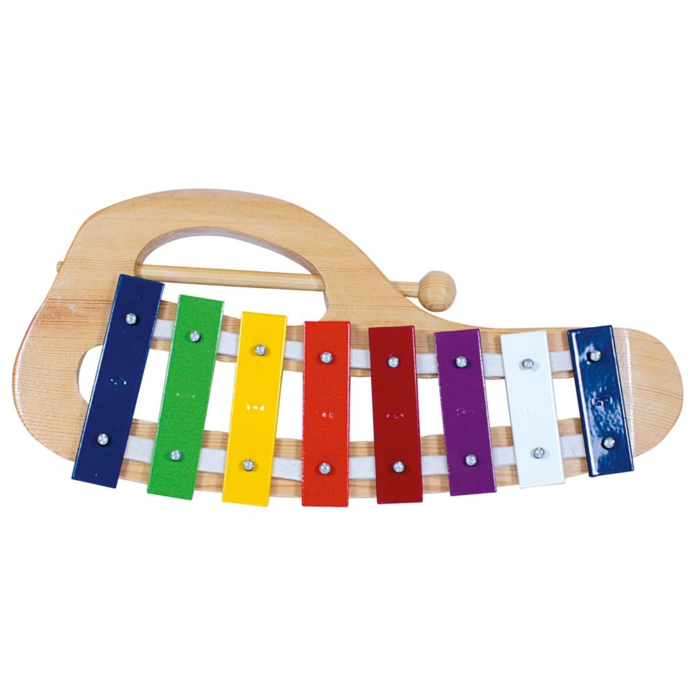 Kolorowy ksylofon z metalowymi klawiszami w praktycznym designie z wysuwanym drewnianym młotkiem jest nie tylko tradycyjną zabawką motywującą do rozwoju umiejętności muzycznych, ale także instrumentem muzycznym do ćwiczenia sensorycznych zdolności motorycznych.