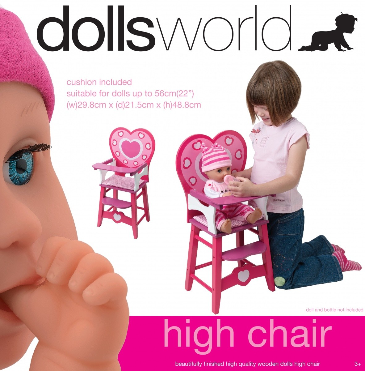 Dolls World Drewniane krzesełko do karmienia dla lalek do 56 cm to idealne uzupełnienie zabawy lalką Dolls World.