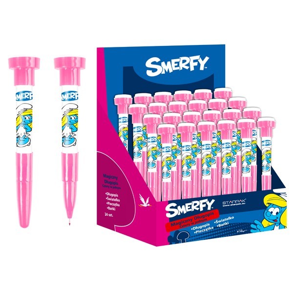 Strona główna Artykuły szkolne i piśmiennicze przybory szkolne Długopis 4w1 Smerfy Cena Netto: 4,51 zł. error_outline Produkt chwilowo niedostępny. Opis Długopis 4-funkcyjnyOprócz pisania, umożliwia puszczanie baniek i stawianie pieczątek, a także świeci.Zdobiony atrakcyjnym motywem ze Smerfami.