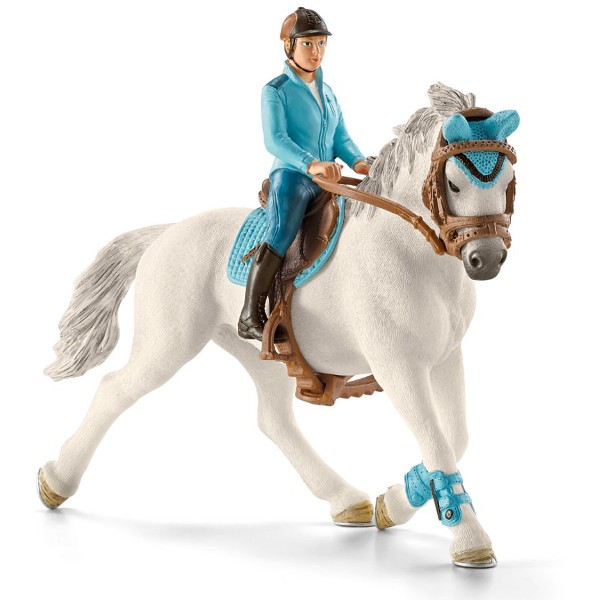 Zestaw zawiera figurkę dżokeja i konia z wyposażeniem.
