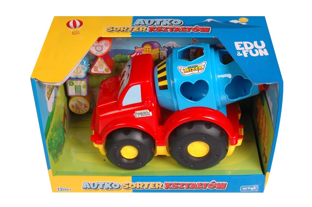 Maluch bawi się i uczy, poprzez dopasowanie klocków o różnych figurach do odpowiednich otworów.
