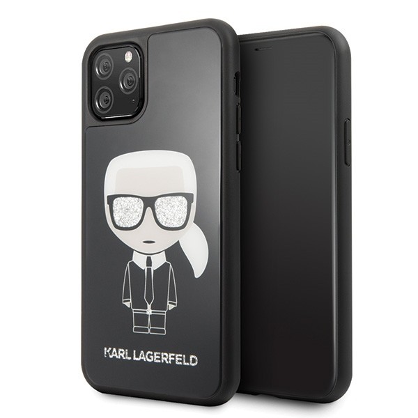 Etui ozdobione ikoną Karla, dodatkowego blasku i elegancji dodaje podkład ze srebrnego brokatu.