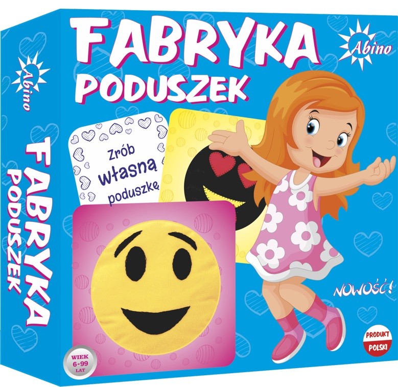 Fabryka Poduszek jest zestawem który zawiera wszystko co niezbędne do tworzenia poduszek w kształcie emotikonek.