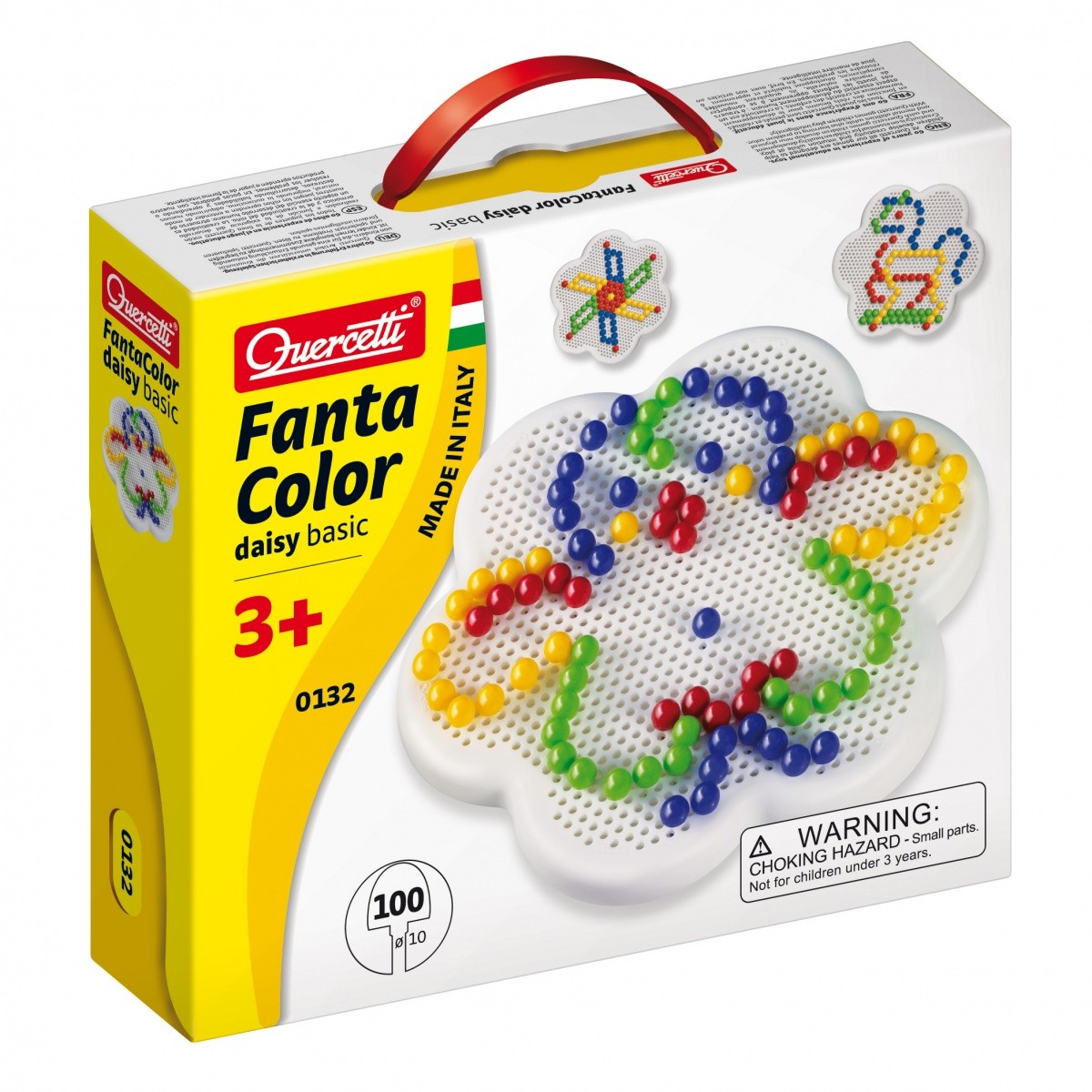 Tworzenie mozaiki poprzez wstawianie kołeczków w perforowaną tablicę jest wspaniałą i twórczą zabawą, która stymuluje rozpoznawanie kolorów, rozwija umiejętności manualne oraz koordynację ruchową. Wszystkie elementy wykonane są z tworzywa wysokiej jakości, są elastyczne, zmywalne, mają zaokrąglone brzegi, bezpieczne.