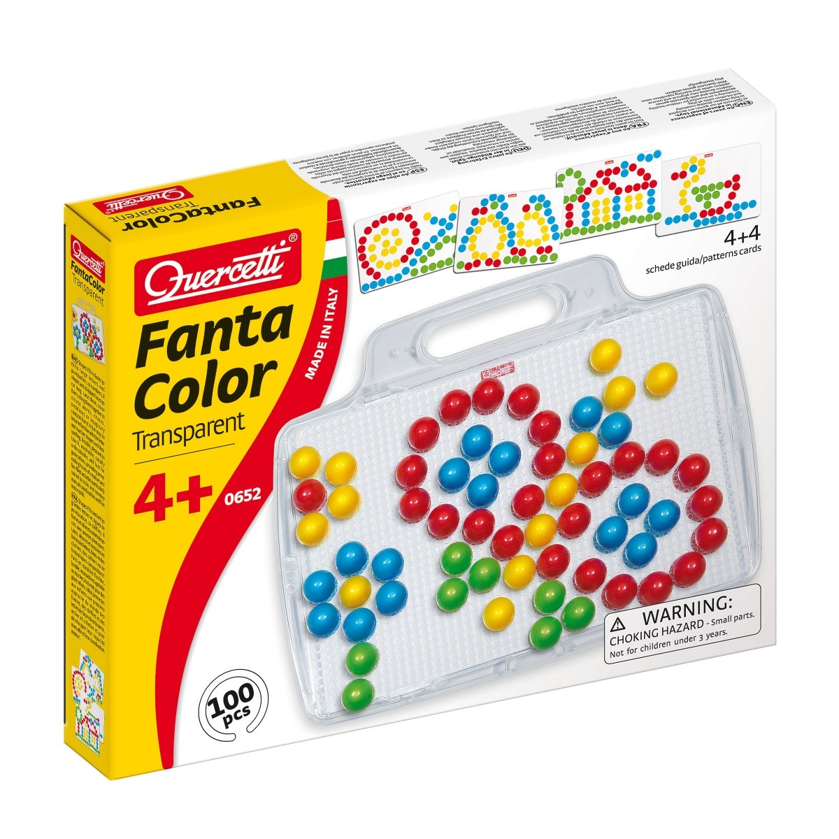 Tworzenie mozaiki poprzez wstawianie kołeczków w perforowaną tablicę zgodnie z proponowanym wzorem bądź własną wyobraźnią jest wspaniałą i twórczą zabawą. Zabawka stymuluje rozpoznawanie kolorów, rozwija umiejętności manualne oraz koordynację ruchową.