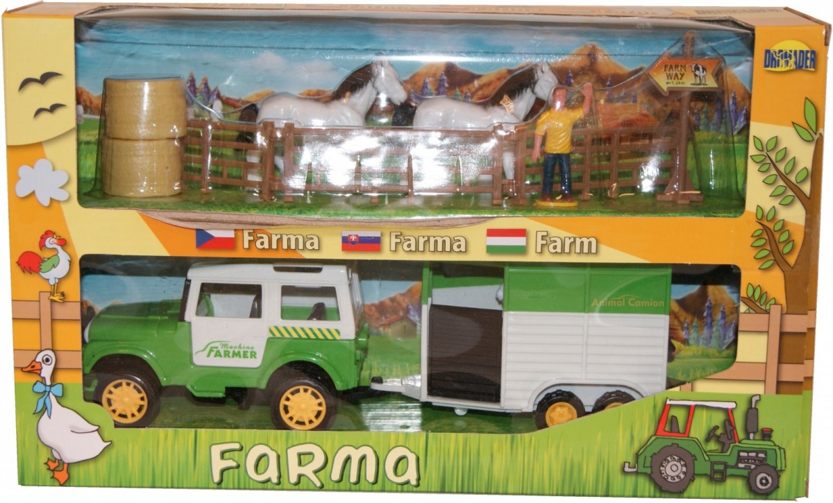 Strona główna Pojazdy pojazdy Farma, Zestaw Jeep z maszynami Cena Netto: 28,00 zł. error_outline Produkt chwilowo niedostępny. Opis Farma - Zestaw Jeep z maszynamiZestaw zawierający Jeep z przyczepą oraz figurki koni i rolnika z akcesoriami.