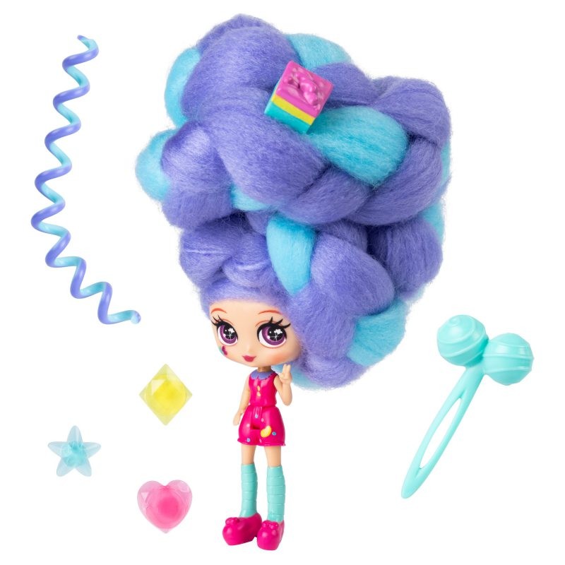 Z 15 centymetrami super miękkich włosów inspirowanych watą cukrową, każda lalka Candylocks jest ukrytą niespodzianką, owiniętą w jej włosy! Rozwiń je, aby odsłonić uroczo pachnącą lalkę!