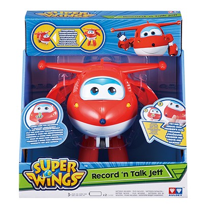 Zabawka z funkcją nagrywania głosu. Jett będzie słuchał tego co mówisz i powtórzy! Po prostu dotknij jego nosek, aby nagrać wiadomość i posłuchaj jak Jett mówi. W komplecie ruchome ręce i nogi. Figurkę można transformować z samolotu w robota.