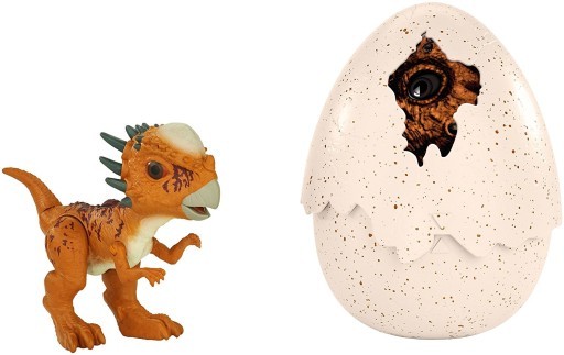 Jajkozaury pozwalają uchwycić magiczną chwilę, kiedy wykluwa się mały dinozaur i można go zobaczyć po raz pierwszy! Każde z kolorowych jajek pozwala podejrzeć poszczególny unikalny gatunek. Naciśnij czubek jajka, a chwilę później góra jajka wyskoczy i ukaże się mały dinozaur! Każdy z małych dinozaurów posiada specjalną cechę, która jest charakterystyczna dla jego gatunku. Tyranozaurowi rosną zęby. Mała Blue lubi chrupać nakarm ją granulkami, a wyjdą z drugiej strony. Triceratops tupie, a Stiggy ma rosnące rogi. Dzieci będą mieć mnóstwo frajdy, bez końca bawiąc się wykluwającymi się jajkami, które są także świetnym miejscem do przechowywania małych dinozaurów. Sprzedawane oddzielnie w zależności od dostępności. Kolory i elementy dekoracyjne mogą się różnić.