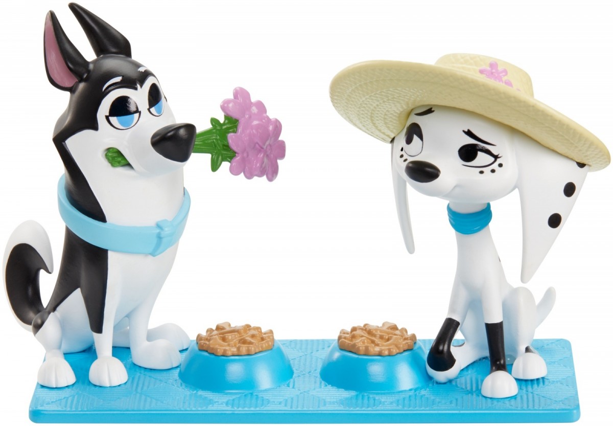 Każdy psi dzień jest pełen przygód na Ulicy Dalmatyńczyków 101! Fani mogą odgrywać ulubione serialowe scenki dzięki temu asortymentowi 2-paków każdy zawiera 2 figurki piesków (ok. 7,5 cm) i 3 akcesoria. Ponadto w każdym zestawie znajduje się jedna wyjątkowa postać! Do wyboru Dolly i Hansel na romantycznym pikniku (z kapeluszem, kwiatami i "jedzeniem"), królewskie wesele Dylana i Clarissy (z tortem, pelerynką i welonem), Dylan i Fergus podczas szalonego spaceru (z kapeluszem, okularami przeciwsłonecznymi i pokrywą od kubła na śmieci z kółkami) oraz Dolly i Dad podczas misji strażackiej (z dwoma hełmami i wężem przeciwpożarowym). Zbierz je wszystkie, aby stworzyć własną rodzinę piesków z Ulicy Dalmatyńczyków 101! Zestawy sprzedawane oddzielnie w zależności od dostępności. Kolory i elementy dekoracyjne mogą się różnić.