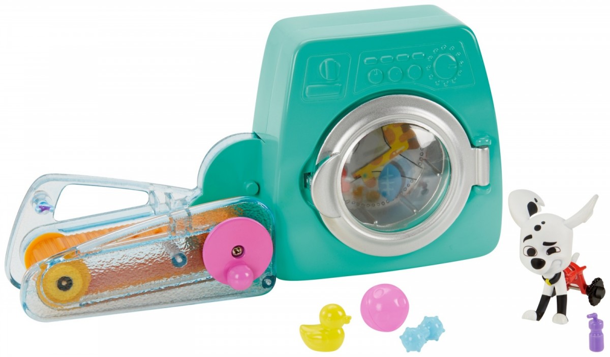 Każdy psi dzień jest pełen przygód na Ulicy Dalmatyńczyków 101, nawet podczas wykonywania codziennych obowiązków! Ten asortyment składa się z zabawnych zestawów do zabawy z zaskakującymi funkcjami, które pomagają pieskom wykonywać ich domowe zadania - tak samo jak w bajce Disneya! Do wyboru Dolly i jej wanna do "szczotkowania" lub Delgado i jego pralka z "wybiegiem". Aby wyszorować Dolly w wannie, przesuń dźwignię - szczotki zaczną się ruszać! Następnie wlej wodę i naciśnij pompkę, żeby pochlupać! Delgado jest gotowy, aby biegiem zrobić pranie! Mali pomocnicy mogą "uruchomić" jego pralkę - wystarczy zakręcić kołem, a bieżnia będzie się ruszać i akcesoria zaczną wirować w pralce. Zestawy sprzedawane oddzielnie w zależności od dostępności. Kolory i elementy dekoracyjne mogą się różnić.
