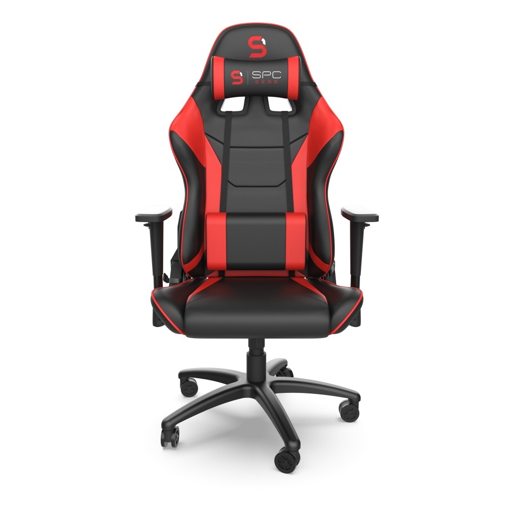 Fotel SPC Gear SR300 V2 RD ma w pierwszej kolejności zapewniać wygodę i komfort codziennego użytkowania. Umożliwia to właściwy z ergonomicznego punktu widzenia kształt z płaskim siedziskiem i wyraźnie podpartym kręgosłupem w sekcji lędźwiowej i szyjnej. Służą temu także m.in. dwie seryjnie dodane poduszki, których właściwe ułożenie jest kluczowe dla wygody siedzącego. Nowe podłokietniki są teraz płaskie i szerokie, a dzięki takiemu rozwiązaniu korzystanie z fotela staje się jeszcze bardziej komfortowe.
