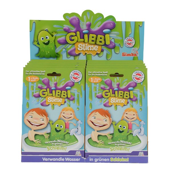 Proszek zamieniający wodę w zieloną albo niebieską masę Glibbi Slime. 1 opakowanie wystarcza na 40 litrów masy. Aby rozpuścić Glibbi Slime należy dodać do niej 30 litrów wody. Cena za 1 szt. Wybierane losowo.